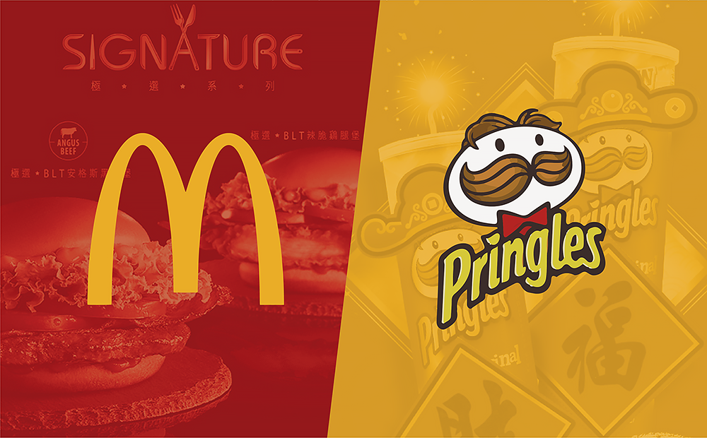 且一款融合顏色、字體等不同元素加以變化,再透過巧思與邏輯排列組合而成的Logo,也容易利用上述特性,讓人產生情感依附,例如:以黃及紅為主視覺的麥當勞,比起其他顏色更容易喚起大家對速食的渴望、胃口大開;無獨有偶,美國家樂氏旗下的品牌品客(Pringles)Logo,也是以黃色加上陰影的美式字體,搭配鮮紅的小領結,紅黃配色更讓人胃口大增,一片片的洋芋片不禁讓人一口接一口。
