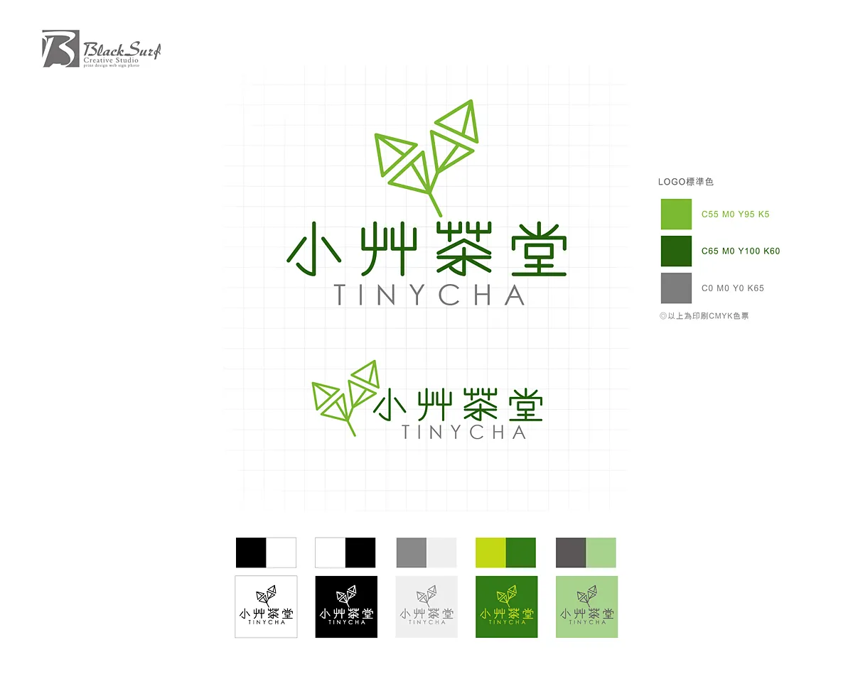 字體與圖像都已較細的筆觸設計,並且為「小艸茶堂」打造專屬的字體,設計出無論年齡層,都能輕易接受並喜愛的風格。色系配合「茶」給人的感受,以綠色為主軸,再以灰色做為英文字體,不搶過品牌名稱的風頭,卻仍保有極高的辨識度。